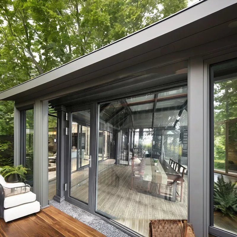 အလူမီနီယမ်အလွိုင်းနေဝင်ခန်းများသည် မော်ဂျူလာထုတ်လုပ်မှုမုဒ်ကို လက်ခံသည်။ ဖရိမ်ပရိုဖိုင်းများကို anodizing, နှင့် connectors များအတွက်ဆက်ဆံကြသည်။ ကော်လံများနှင့် beam များသည် splicing တိကျမှုနှင့်ဖွဲ့စည်းပုံဆိုင်ရာတည်ငြိမ်မှုကိုသေချာစေရန်တိကျသောစိတ်ကြိုက်အစိတ်အပိုင်းများဖြစ်သည်။ အထူးတံဆိပ်ခတ်ခြင်း။ လျှို့ဝှက်ရေနုတ်မြောင်းဒီဇိုင်း (3%-5% ရေနုတ်မြောင်း) နှင့်လိုက်ဖက်သောအဆစ်များတွင် strips များနှင့်ရေစိုခံလုပ်ငန်းစဉ်များကိုလက်ခံသည် လျှောစောက်ကို ထိပ်တွင် သီးသန့်ထား၍) ရေစုပုံခြင်းနှင့် ယိုစိမ့်ခြင်းတို့ကို ထိရောက်စွာ ရှောင်ရှားပါ။ ဖန်နှင့်ဘောင်ကြားတွင် အဆစ်တစ်ခုဖြစ်သည်။ ရေစိုခံခြင်းနှင့် အသံလျှပ်ကာအကျိုးသက်ရောက်မှုများ ပိုမိုတိုးတက်ကောင်းမွန်စေရန် sealant ဖြင့် အားဖြည့်ထားသည်။ ခြုံငုံဖြစ်စဉ်က မြင့်မားနေပါသည်။ စေ့စပ်သေချာသောအသေးစိတ်ထိန်းချုပ်မှုနှင့်အတူစက်မှုလုပ်ငန်းစံချိန်စံညွှန်း။