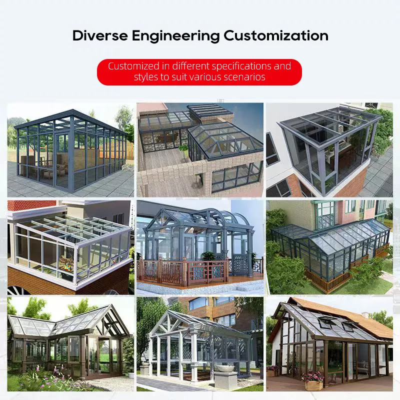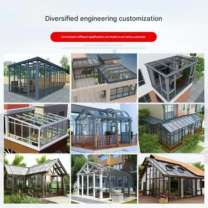 ပြောင်းလွယ်ပြင်လွယ် စိတ်ကြိုက်ပြုလုပ်ခြင်း- ခေါင်မိုးပုံစံများ၊ အရွယ်အစားများ၊ အရောင်များ၊ ဖန်အမျိုးအစားများနှင့် ဆက်စပ်ပစ္စည်းများကို စိတ်ကြိုက်ပြင်ဆင်နိုင်ပါသည်။